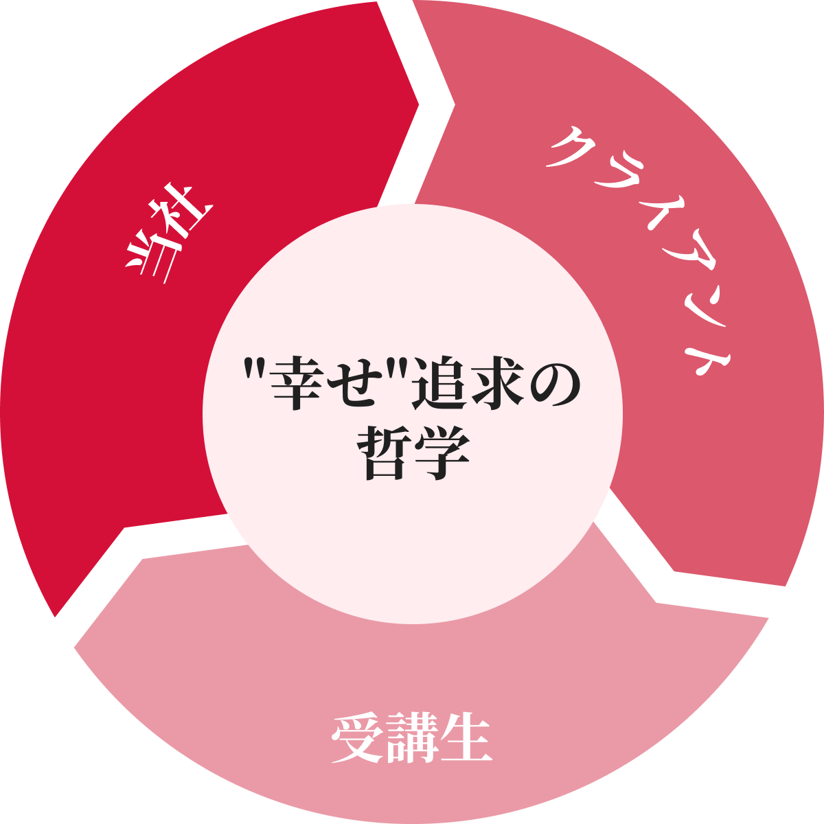 言い換えれば、急速な技術革新や激しい社会変化の中でも不変なのは「個人・社会の”幸せ”」の追求です。そのため、当社は「”幸せ”追求の哲学」を中心に据え、すべての活動の指針としています。